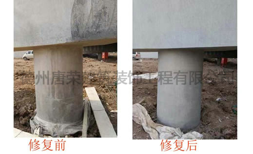 混凝土的缺陷形式很多,比如蜂窩、露筋、麻面等,這些都是小的缺陷,修補及修飾對我公司來說是不成問題,修飾部分的混凝土表面與大面沒有大的色差。主要的缺陷是漲模。這種缺陷的修飾需要大量的人工及材料,還需要技術水平高的工人來操作。我公司專業修補混凝土的蜂窩、麻面、裂縫、露筋、露震、錯臺、局部破損等混凝土缺陷。